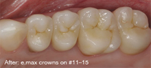 Simply put, IPS e.max crowns, look Great and Last Virtually Forever. Your patients will benefit from the beauty of cementable all-ceramic crowns that fully match their existing teeth without compromising strength and durability. Since e.max crowns they are milled from a single block of lithium disilicate material, we have a greater ability to match the original tooth's color consistency and physical characteristics.